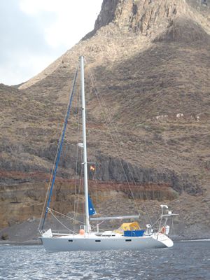 Vendredi midi nous laissons derrière nous la Playa de las Mujeras sous un ciel bleu et 10-15 nœuds de vent. Nous filons plein Ouest vers l’ile de Tenerife. A la nuit tombante Nathalie prends son quart avec juste une serviette de plage pour se protéger de la fraicheur de la nuit. Nous allons trop vite et devons réduire la voilure afin de ne pas arriver avant le lever du jour.