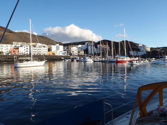 Après une quarantaine de milles nous arrivons à El Hierro – l’ile des Canaries la plus au sud. Le haut des falaises de lave est dans les nuages, ce qui donne un aspect assez austère et peu engageant pour jeter l’ancre. Nous poussons donc jusqu’au petit port de La Rastingua au sud de l’ile.
