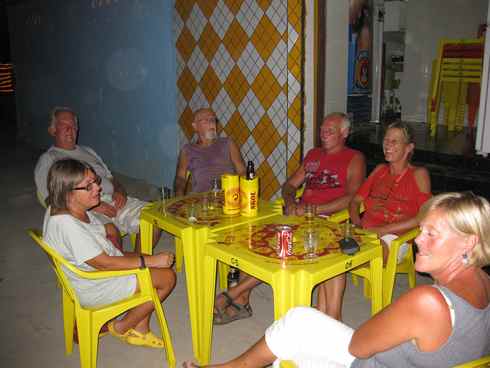Decidiamo di ancorare un po' lontano dal porticciolo con una decina di altre barche a vela. Che calma! Il villaggio sembra tranquillo sotto il sole al tramonto. Presto… Chiudiamo la barca, Mettiamo il gommone in acqua e andiamo alla scoperta di questo scalo. Incontriamo Chris e Penny che si trovano al porto turistico (per poter collegare il proprio condizionatore alla rete elettrica). All'ansa della piazza del paese incontriamo i nostri vicini di casa che sono tedeschi e uno dei loro amici che vive sull'isola da allora 10 Anni. Termina sulla terrazza di un caffè di fronte al mare… fino a quando un camion delle consegne si ferma proprio di fronte a noi! E' ora di andare a letto.