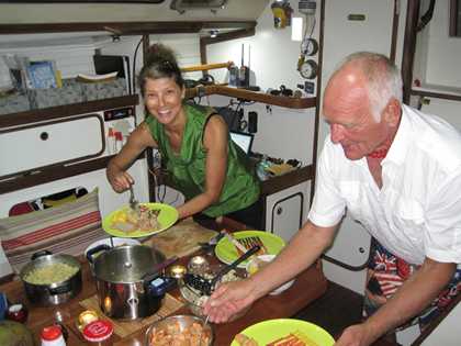 31 Décembre 2010… 14 heures… qu’allons nous faire pour réveillonner? Jacques est déjà de la partie. Un saut sur Pico, puis sur le Assinie le bateau de Xavier et Julie… On se retrouve tous sur Hibiscus après le coucher du soleil. Chacun amène un plat + boissons…