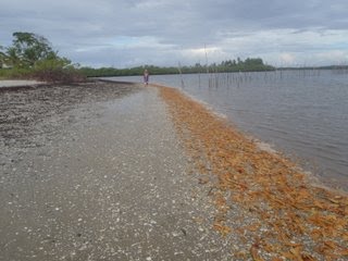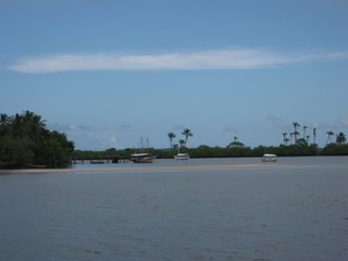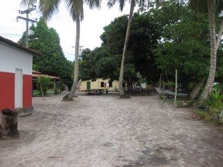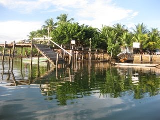 Après avoir traversé un pont nous espérons trouver un chemin pour nous promener… mais le sentier disparait rapidement dans la mangrove après la sortie du village. En fait le village n’est pas accessible par la terre. Nous achetons des “geladinhos” (petits sacs plastiques remplis de jus de fruit glacé que l’on suce) à la minuscule épicerie du village. L’épicier nous vente sa Cachaça à la Jamaica (plante locale) qu’il fait lui même… nous goutons… nous achetons pour quelques Réas.