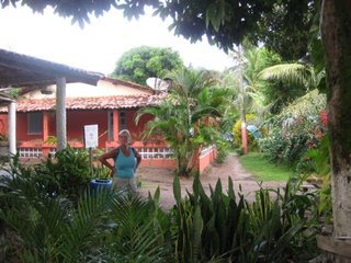 Dimanche 27 Mars – Nous commençons la journée par une douche sous la pluie… puis débarquons sur le vieux ponton en bois du village de Sapinho. Là un chemin sablonneux serpente entre les petites maisons colorées et les buissons fleuris d’hibiscus. Le long du Rio il y a quelques restaurants ombragés, mais ce n’est pas la saison touristique et les bancs sont vides. C’est Dimanche… les femmes sont dehors à discuter… les hommes doivent être au bar!!! C’est “tranquil”!