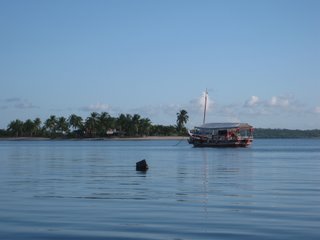 Samedi 26 Mars – Arrivés dans la baie de Camamu nous passons rapidement devant “Barra Grande” qui est la station touristique de la baie et nous continuons vers le sud en remontant le Rio Maraù. Le reste de la baie n’est pas du tout développé car l’eau n’y est pas très profonde. Très peu d’endroits de la baie sont accessibles par la terre… et encore ce n’est que par des pistes. De plus ce n’est plus la saison touristique. Nous allons donc à la rencontre de la nature…