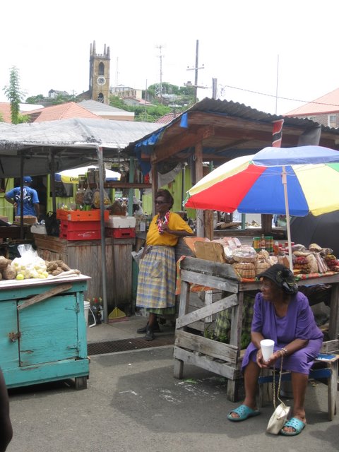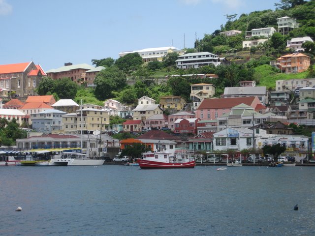 Quelques jours au mouillage et nous commençons à bien connaître la route des mini-bus que nous hélons sur le bord de la route et qui nous emmènent vers la capitale: St Georges. Nous visitons St Georges, ses collines et ses forts, parcourons le marché aux épices où nous restons à discuter avec Thérésa qui tient un petit stand d’épices, achetons quelques légumes sur les étals du marché qui n’ont pas grand chose dessus, passons au supermarché….