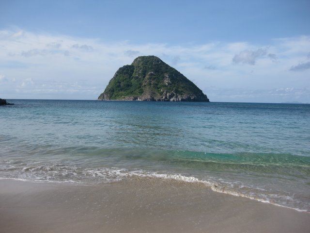 Vers 11h00 nous dépassons la pointe nord de Grenade… Un courant violant fait écumer la mer dans un désordre de vagues qui jaillissent de tous côtés… le moteur prend la relève afin de garder le cap et rester loin de tous les rochers égrainés le long de la route (Anthony rock, Bird island, Green island, Sandy island, Sugar Loaf, London bridge, isle Caille…). Ce serait bien de pouvoir s’arrêter à Isle de Ronde. Le guide nautique indique que ce mouillage est très peu utilisé… pour une très bonne raison: il est très Rouleur (c’est une baie peu abritée avec des vagues et de la houle qui font “rouler” le bateau de droite à gauche pour nous empêcher de dormir!). Mais comme c’est sur la route…. on peut toujours aller voir….