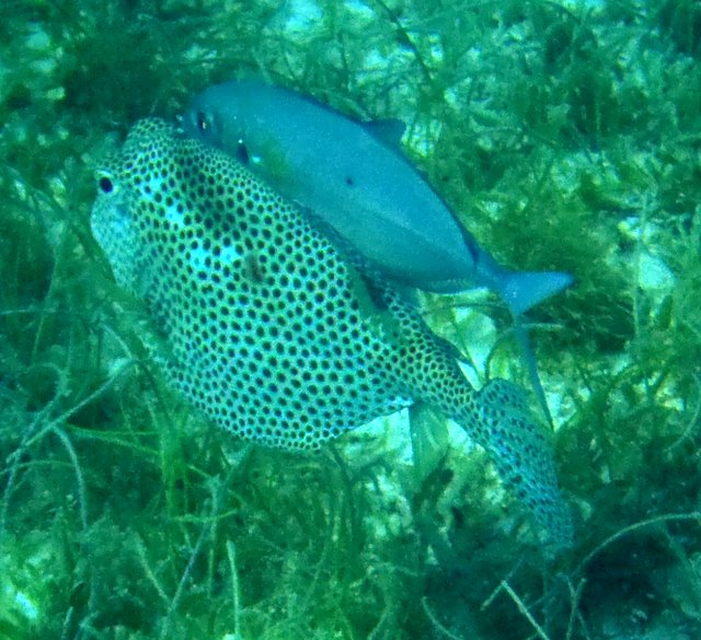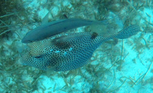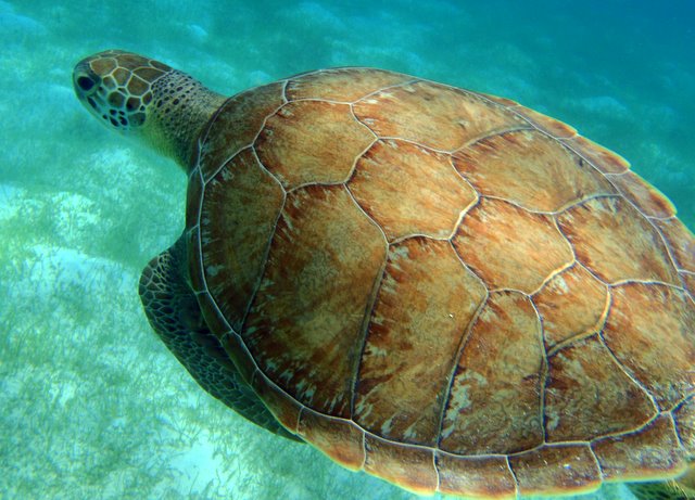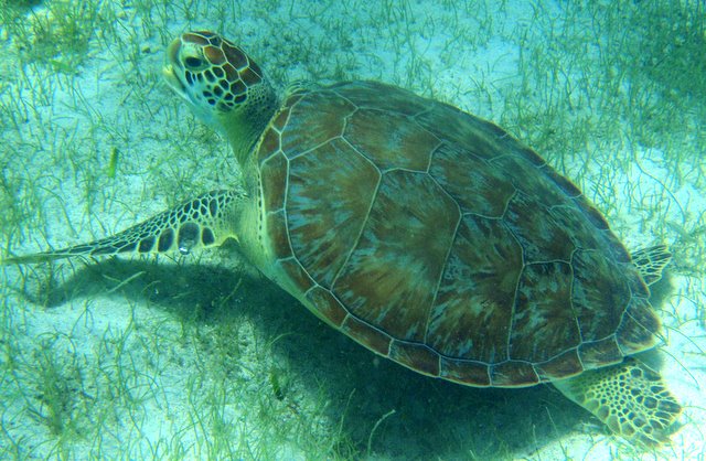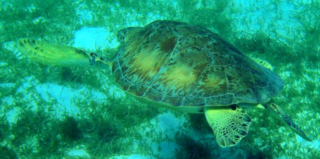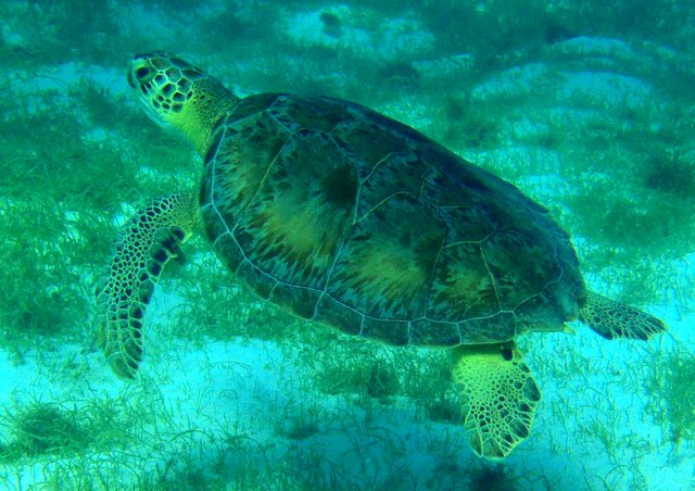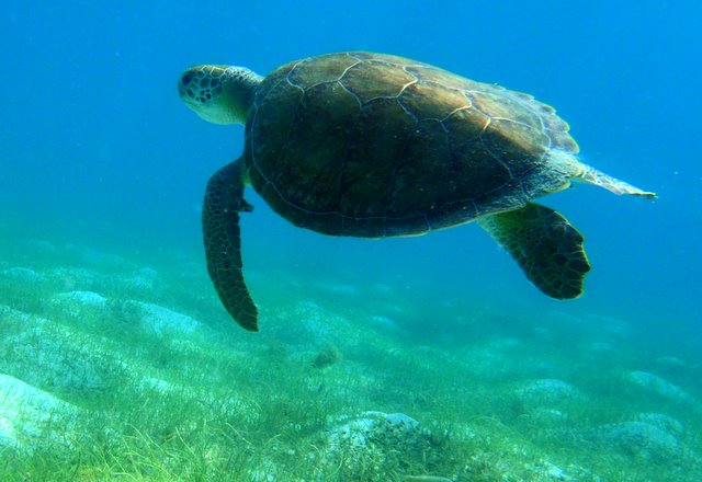 Après avoir jeté l’ancre, nous allons en annexe jusqu’aux bouées qui limitent la zone ou vivent les tortues… nous plongeons avec masque et tuba et déjà nous croisons des tortues vertes (voir photos) qui nagent tranquillement à quelques mètres en dessous de nous sans se soucier de notre présence….certaines sont baguées, donc répertoriées puisque nous sommes dans un parc naturel. Des raies léopard (noires à taches blanches) volent gracieusement à deux mètres sous nous! On pourrait rester des heures à les observer… nous profitons de ce spectacle unique, sachant que d’ici fin Octobre les touristes vont arriver en masse dans les iles et les fonds seront moins tranquilles…
