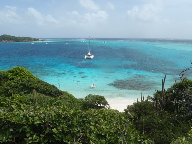 Vendredi 14 Octobre – Nous quittons Saline Bay sur l’île de Mayreau… direction Tobago Cays…ce n’est qu’à quelques miles. Les iles nous rappellent de bons souvenirs pour y être venus en Catamaran il y a 3 ans…. à l’approche du mouillage, nous avons la bonne surprise de ne voir à l’horizon que 3 bateaux… alors qu’il y a quelques années c’était au moins une centaine de bateaux qui étaient mouillés face à la plage de “Baradal Cay”! Ce sont les avantages de la basse saison et il faut dire que aujourd’hui il y a un vent à “décorner les bœufs” et un clapot assez fort.