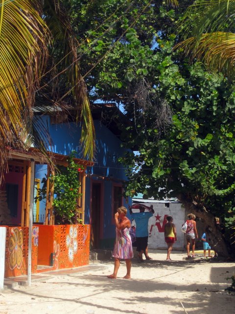 Le dernier arrêt est celui où nous devons payer le droit d’entrée dans le parc naturel. Mais le bureau est fermé le dimanche et c’est l’heure de l’apéro. Après trois ou quatre bière l’argent change de main et Junior est devenu notre meilleur ami… il nous explique où aller dans les îles, nous donne le droit de pêcher sans permis… et nous dit que nous pouvons partir sereins et que nous pourrons payer le droit d’entrée du parc si/quand nous repassons par le village (comme c’était en Espagnol nous avons compris ce qui nous arrangeait)… de toute façon c’est lui le chef et c’est lui qui contrôle le parc!