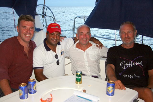 Vers 17h00 Daniel rappelle les troupes par VHF. Junior est arrivé sur Wakame. Nous rappliquons sans tarder… Daniel a déjà servi une bière au garde côte.