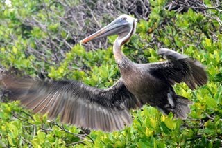 Du 21 au 28 Novembre: Les Aves Barlovento. “Les aves” signifie “les oiseaux”… et effectivement sur ce premier groupe d’îles chaque branche de la mangrove est un perchoir pour un fou de bassan ou un pélican… les frégates voltigent haut… les aigrettes, ibis et autres échassiers guettent le poisson à chaque détour… En annexe nous pénétrons profondément dans la mangrove pour les voir de plus près… nous avançons lentement à la rame… Les fous sont les moins farouches… certains nous jettent un regard intrigué ou curieux mais rapidement retournent à leurs occupations… rêveries, nettoyage de plumes, discussion avec son voisin, draguer le fille de la branche du dessus… c’est une indifférence totale à notre égard! C’est à peine si ils s’envolent quand notre annexe touche la branche sur laquelle ils sont posés!