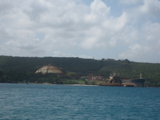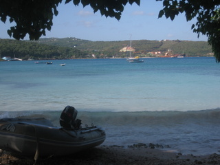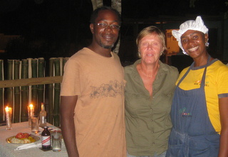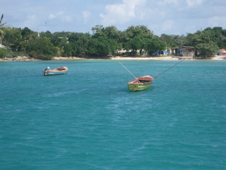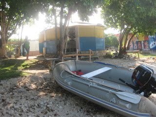 Notre première visite est pour les gardes cote, qui ne se sont même pas rendu de la présence de notre voilier dans leur baie déserte! Ils remplissent avec application des formulaires, apposent quelques signatures, des tampons… et nous voici en règle avec les autorités. Un petit bar de plage circulaire attire notre attention et nous sympathisons rapidement avec la jeune propriétaire “Roma” qui n’a ouvert que depuis quelques jours. Nous sommes parmi ses premiers clients. Elle propose de nous préparer un repas pour le soir , nous acceptons l’invitation. Peu après le coucher du soleil quelle fut pas notre surprise en débarquant sur la plage. Sur le sable, sous les palmiers, une table avec nappe blanche et bougies nous attendait…. Nous sommes les premiers clients du restaurant! Nous discutons longuement avec Roma et son ami Seymore qui est guide touristique…. Un jeune couple sympathique avec des projets pour s’en sortir dans cet environnement très pauvre. Seymore nous propose de nous emmener le surlendemain pour une visite touristique de la région.