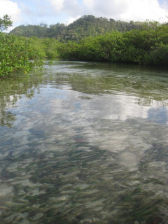moteur de 10cv sur l’eau. La mangrove et la baie de Lington s’y