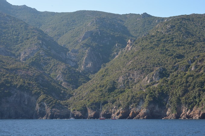 Nous continuons notre navigation vers le nord avec une première étape à Cargèse. C’est un endroit très touristique et animé en haute saison. Seulement quelques bateaux de location sont au mouillage.![]()