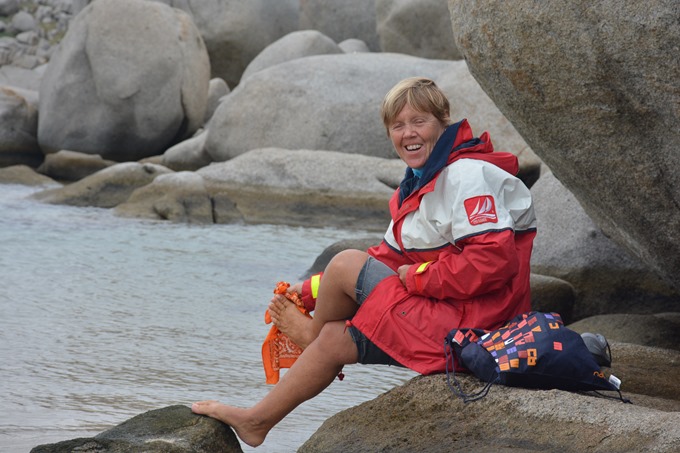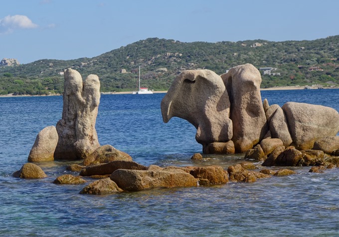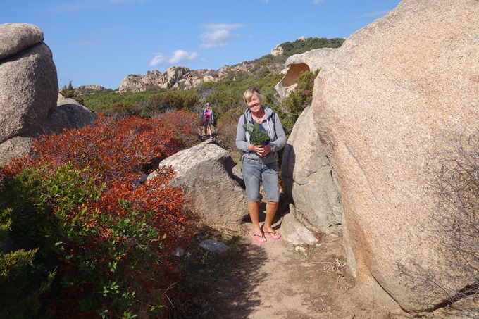 La chance est avec nous il fait beau et chaud mais…… le temps se gâte sérieusement nous allons dans la profonde baie de Figari pour nous abriter du vent. C’est sous une pluie battante et glaciale que 4 fois de suite nous jetons l’ancre mais ça n’accroche pas dans la vase. Nous allons à quelques miles au nord dans la baie de Capinero. Cette fois ci l’ancre accroche bien. Un petit verre de vin est le bienvenu pour nous réchauffer, même si ce n’est pas tout à fait l’heure de l’apéritif![]()
