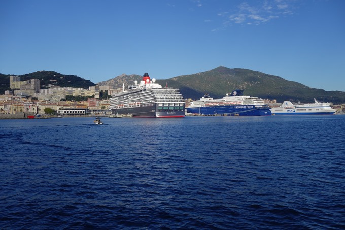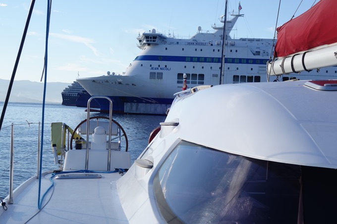 Nous mouillons au sud de la jetée Margonajo entre la marina et les quais des ferrys. Que de bruit et de mouvement entre le va et vient de ferrys SNCM et Corsica, les camions qui entrent ou sortent de ces ferrys et les paquebots qui dégueulent leur cargaison de touristes que nous retrouvons désorientés et épuisés dans les ruelles du vieux Ajaccio.