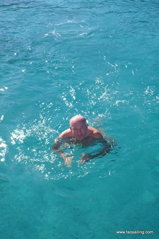Il fait particulièrement chaud et cette fois ci l’eau est trop tentante. J’y rejoins Philippe qui explore déjà les environs avec masque et tuba.