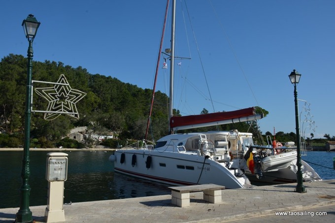 Voici le comité d’accueil dans la “capitale” de Paxos. Bon… à défaut de la fanfare ou d’un quai animé, c’est peut être un signe pour notre repas de Noel![]()