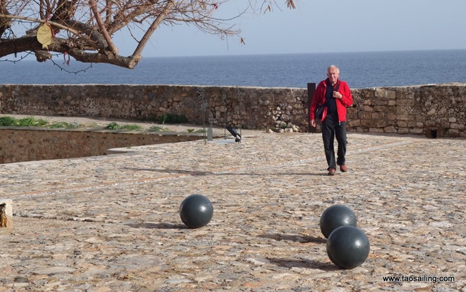 Nous sommes un peu intrigués par ses sphères noires qui sont solidement fixés au sol…un jeu de pétanque peut être.. Philippe serait presque capable de shooter dans l’une des boules….il se ravise finalement ![]()