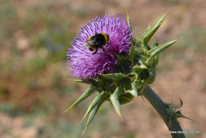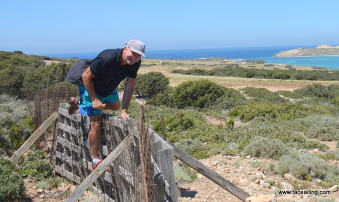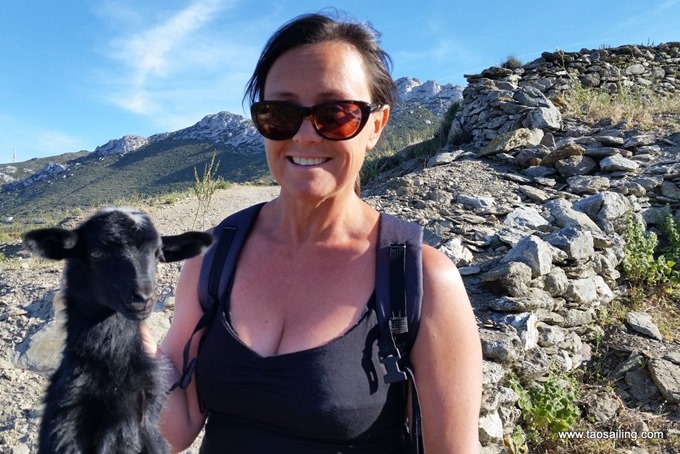 Le lendemain, petite balade sur les hauteurs de l’ile…Sophie sauve un chevreau égaré et coincé dans des buissons.![]()