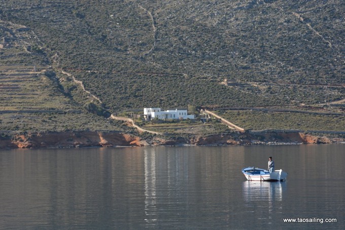Avant de quitter définitivement Amorgos nous faisons un dernier mouillage à l’est d’Amorgos, à l’abri derrière l’ile déserte de Nikoura.![]()
