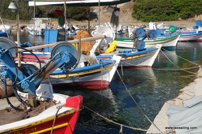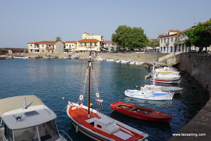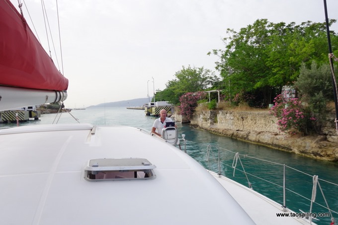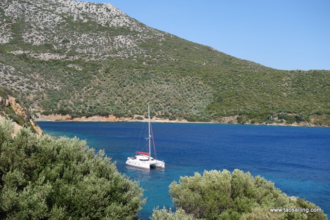 Un fort vent de nord est annoncé ce qui nous incite à nous diriger vers la mer intérieure de Kolpos Yeras que l’on rejoint par un long chenal.