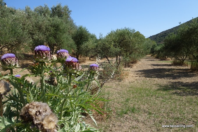 La baie est entourée de champs d’oliviers bien entretenus. C’est l’occasion d’une ballade