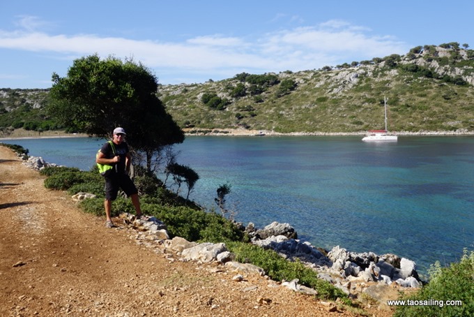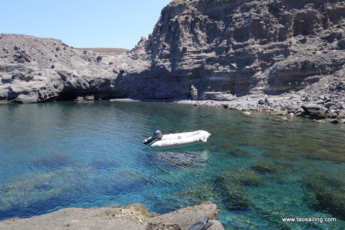 Le vent décide pour nous que nous passerons la nuit à Nisos Atoko… La baie au sud de l’ile semble bien protégée des vents du nord et alors que de nombreuses voiles sillonnent entre les iles… il n’y a personne dans la baie. Quelques manœuvres pour poser l’ancre sur du sable et tirer des amarres à terre, puis nous voilà installés pour 2 jours… Le soir, nos voisines les chèvres nous divertissent en faisant les acrobates sur les parois lissent quasi-verticales.