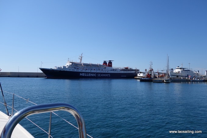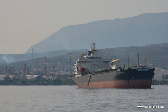 A l’approche de Corinthe, le paysage n’est que cargos et industries. Nous mouillons juste avant le canal pour la nuit et espérons traverser le lendemain.