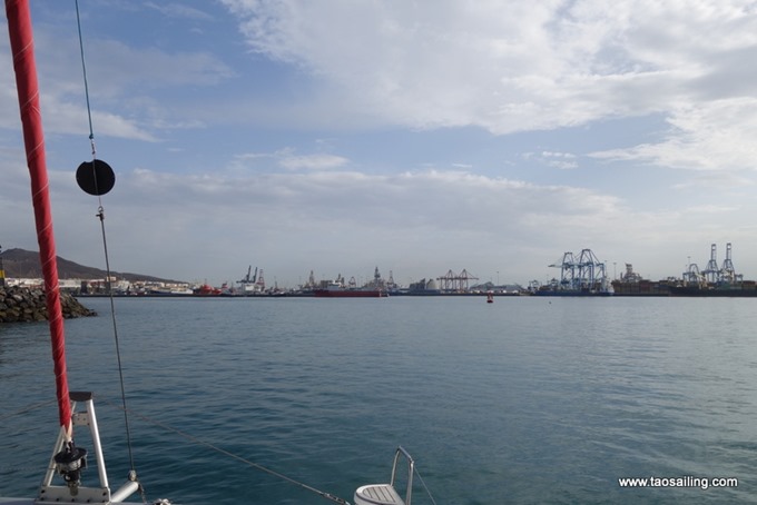 C’est vers 1 heure du matin sous une pleine lune que nous quittons Isla de Lobos afin d’arriver avant la nuit à Las Palmas sur l’île de Gran Canaria. Nous arrivons sous la pluie avec de fortes rafales. Un changement de vent étant prévu, nous décidons de mouiller bien à l’écart des nombreux bateaux déjà ancrés.