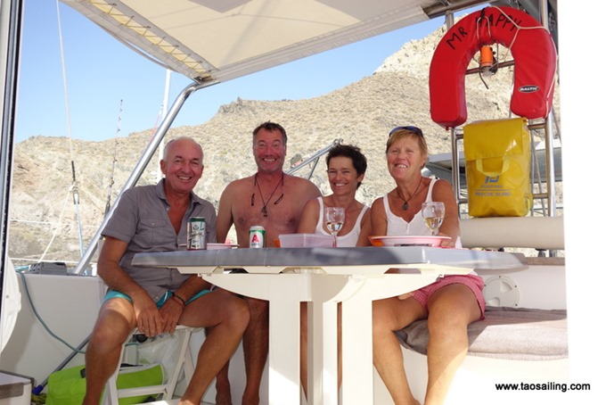 C’est un port… Stef et Marie sur “Mr Happy” qui étaient venus prendre un verre sur Tao à Gibraltar nous aperçoivent et nous passons une bonne soirée sur Mr Happy.