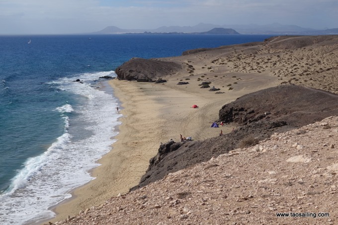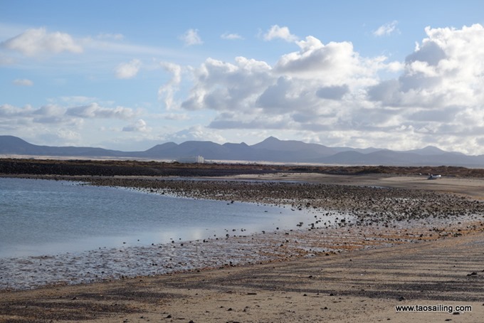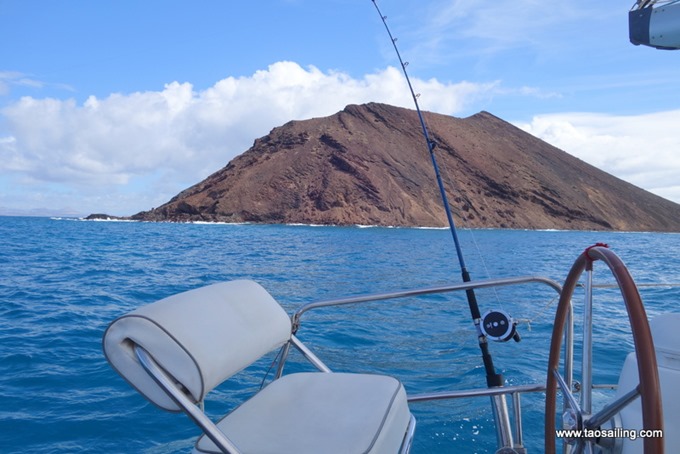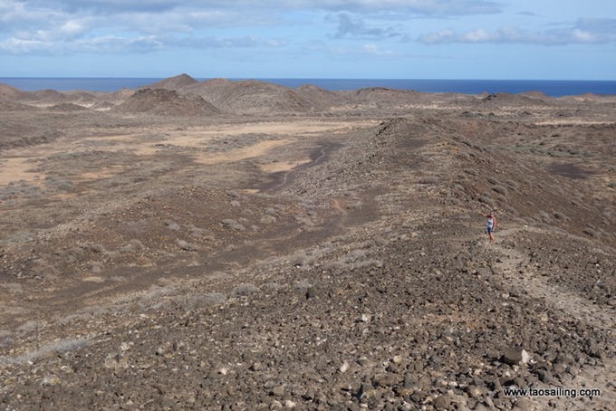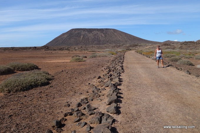 A quelques miles au sud, à la pointe nord-est de Fuerteventura, cette petite île inhabitée est un ancien volcan. Une destination prisée pour les charters à la journée. Nous mouillons un peu à l’écart des bateaux de charter et profitons du beau temps pour aller faire un tour à terre.