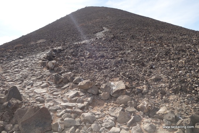 Nous mettons l’annexe bien à l’abri dans un petit lagon et la remontons bien sur la plage. Et hop! nous voici en route vers le volcan.