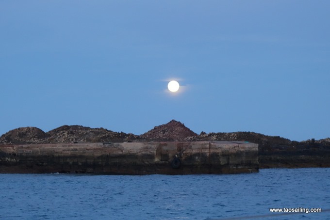 Finalement vers 21h30 nous pouvons sortir du lagon à la rame et rejoindre TAO. Heureusement la pleine lune nous montre le chemin.