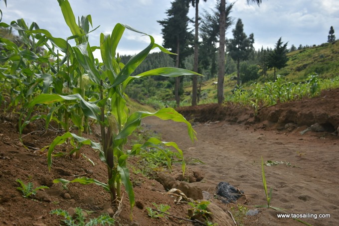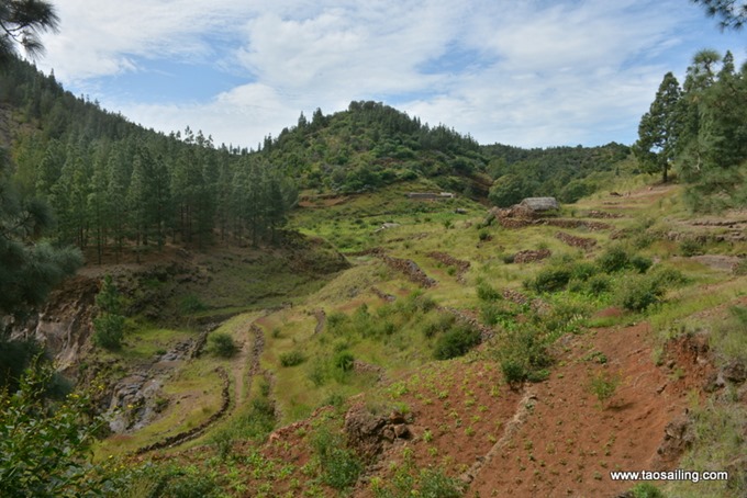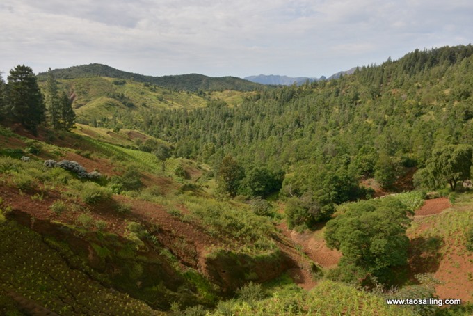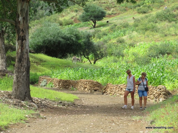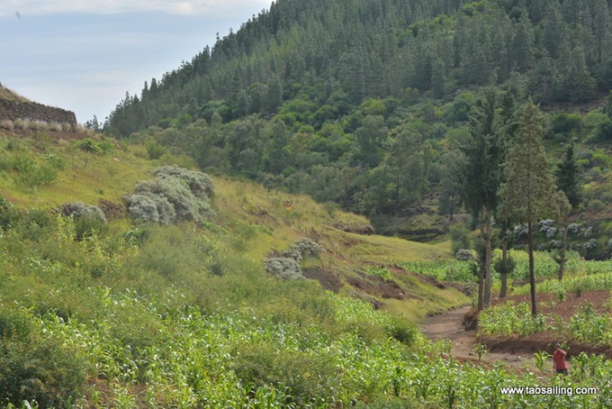 Le chemin descend dans une vallée très verte malgré la rareté des pluies.