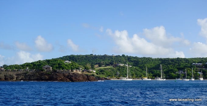 Le dernier jour de navigation nous ajustons les voiles et notre vitesse pour ne pas arriver de nuit. Le soleil fait donc juste son apparition quand nous affalons les voiles et embouquons la passe pour entrer dans la baie de English Harbour.