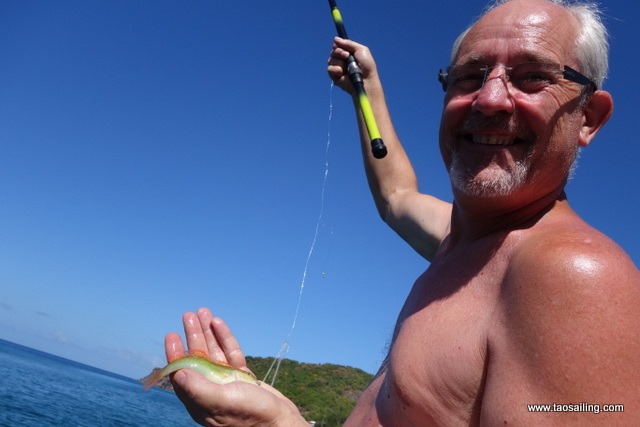 Pierre est trop content d’avoir attrapé un poisson à partager en 6!!!! Maigre