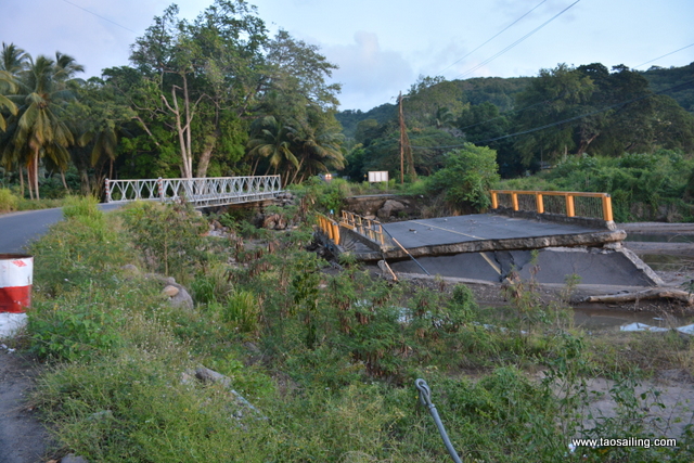 Sur la route du retour les dégâts du cyclone Erika (2015) ne semble pas avoir laissé un seul pont intact.