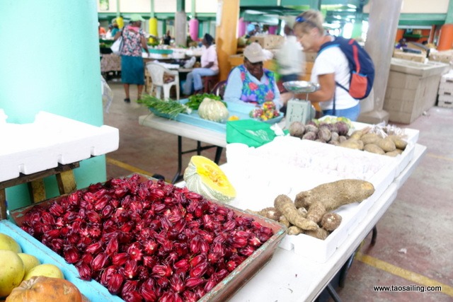 Après avoir mouillé à l’entrée de la baie nous allons en annexe jusqu’au petit port de pêche qui est le centre économique (pour les locaux) entre la station de bus et les marchés. Une vielle dame nous explique comment préparer la boisson traditionnelle de fin d’année avec ces petits fruits rouges appelés “sorrel” et de la cannelle.