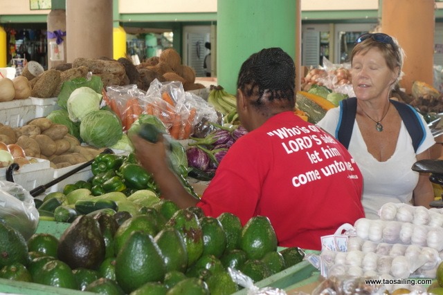 Nous en profitons pour faire le plein de fruits et légumes, et malgré les talents de négociatrice de Nathalie il est impossible de faire baisser les prix exorbitants! l’ananas local à 7 euros, le kilo de tomates ou de poivrons à 10 euros!!! Ce n’est pas le pays où faire ses courses.