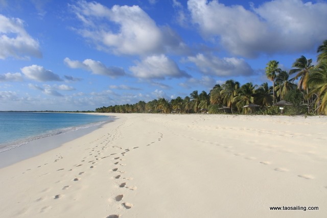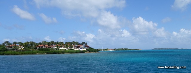 Comme nos colis ne sont pas encore sortis du container, nous allons passer Noël dans le lagon au nord d’Antigua. Nous tirons des bords à la voile dans le canal de Boon par 25 nœuds de vent et une mer plate… c’est un plaisir! Nous affalons les voiles en face de Long Island qui est une ile avec un hôtel de luxe et des résidences de haut standing… nous passons notre chemin…