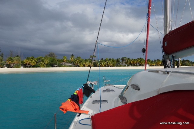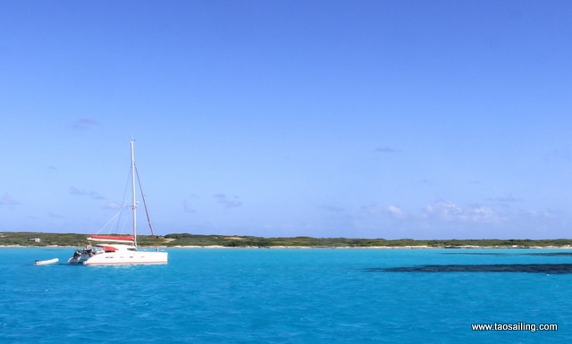 Premier mouillage à Spanish Point derrière la barrière de corail, dans 2,5 mètres d’eau et entre des patates.