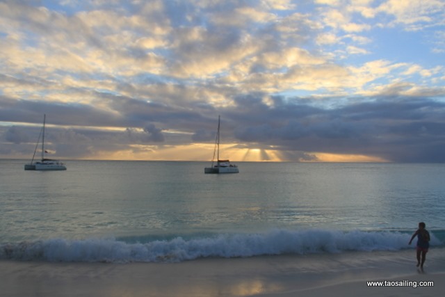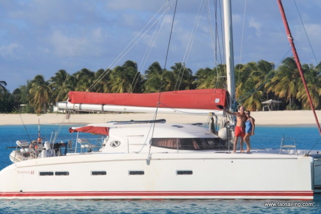 Un Nautitech 47 “CAYALI” est mouillé à côté de nous, avec à son bord Magalie, Grégoire et leurs deux enfant Loïc et Robin. Nous sympathisons rapidement et décidons d’aller ensemble vers Barbuda pour y célébrer la nouvelle année.