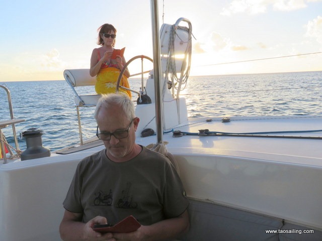 Infelizmente, as ondas de 2,5 para 3 metros, não podemos ir para a "Terra pequena". Pedra assuma o leme para velejar para Marie Galante.