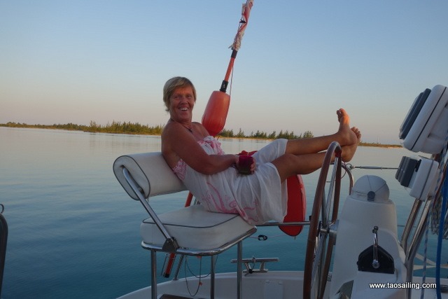 Après la douche Nathalie profite des dernières minutes avant l’attaque des escadrons de moustiques. Nous passerons la soirée barricadés derrière les moustiquaires… il nous faudra 3 jours après cela pour nous débarrasser de ces sales bêtes qui commençaient à coloniser le bateau!