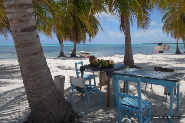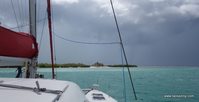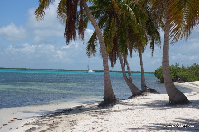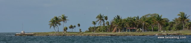 Alors que nous franchissons la passe de Cayo Campos, Jean-Claude du catamaran Ti-Bag vient à notre rencontre pour nous indiquer le chemin à suivre pour mouiller face à la plage. En effet les cartes nautiques indiquent que la zone qui nous sépare de la plage n’a que 40 centimètres d’eau et sans son conseil nous ne nous serions pas aventurés.