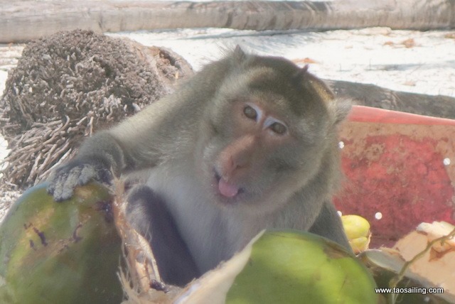Accueil exceptionnel par les gardiens de la réserve de Cayo Campos où une colonie de singes macaques mangeurs de crabes est implantée.
