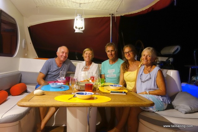 L’équipage de Blue Pearl, un yacht Américain, nous rejoint pour partager le festin que les gardes nous ont préparé.