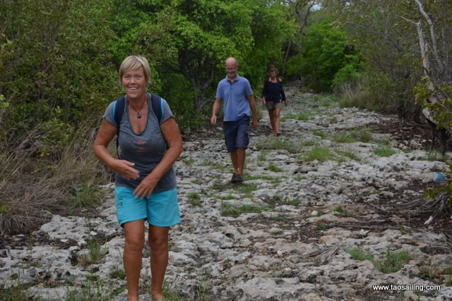Place au choses sérieuses… nous sommes venus à terre pour marcher un peu. Le garde nous indique un chemin sur lequel nous nous élançons. Les tongues ne sont pas les meilleures chaussures pour ce terrain pavé de roches acérées…