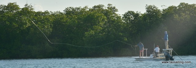 L’endroit est paisible et à part les gens qui voyagent comme nous les autres visiteurs sont des pêcheurs à la mouche qui arrivent sur un gros yacht, sillonnent la mangrove dans leurs embarcations plates… et continuent vers d’autres iles.