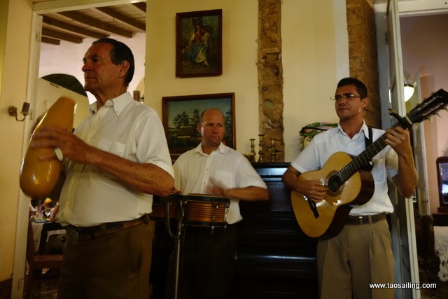 Les plats sont copieux raffinés et originaux comme le porc au café ou bien la Ropa, plat traditionnel. Une belle soirée se termine et le retour se fait en taxi. A peine descendus de la voiture le gardien de la marina nous réclame les 5 CUC correspondant au timbre fiscal qui doit être apposé sur le document de débarquement de Sophie et Yvan. Cette fois ci nous avons le compte juste, nous sommes en règle! ![]()